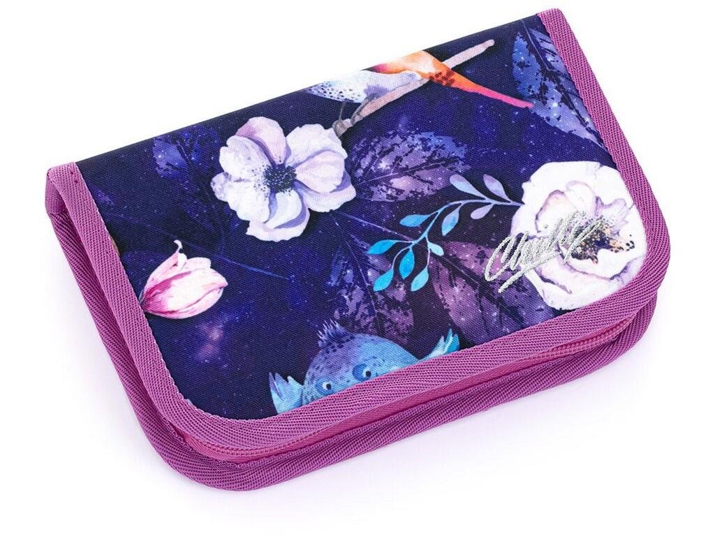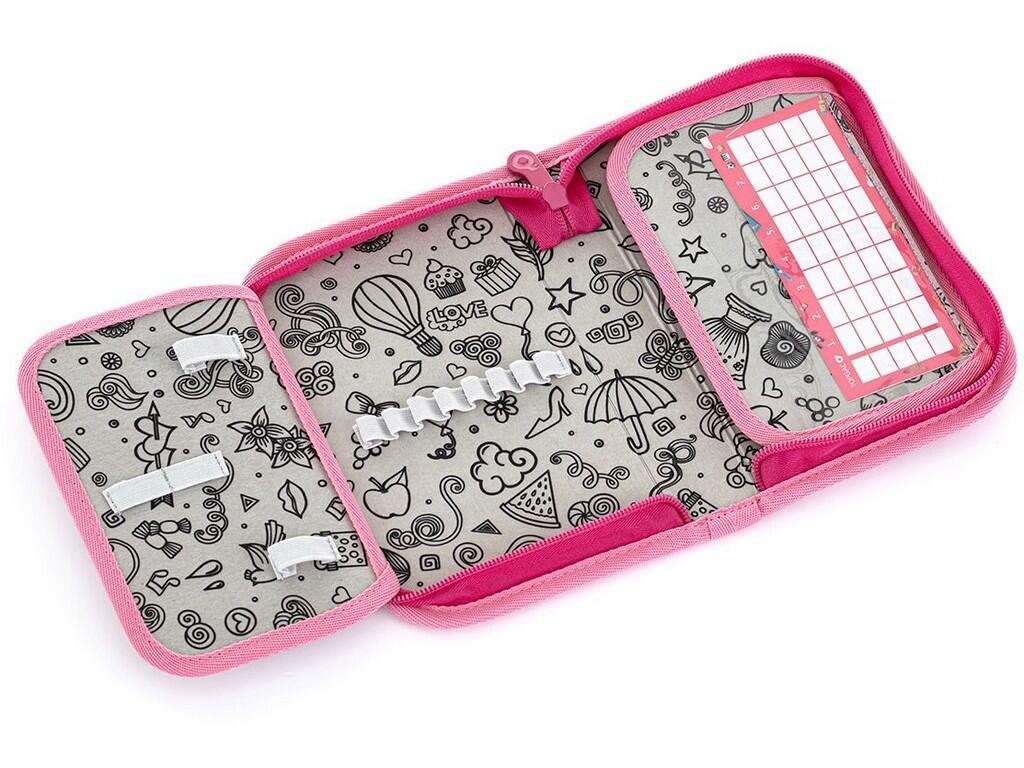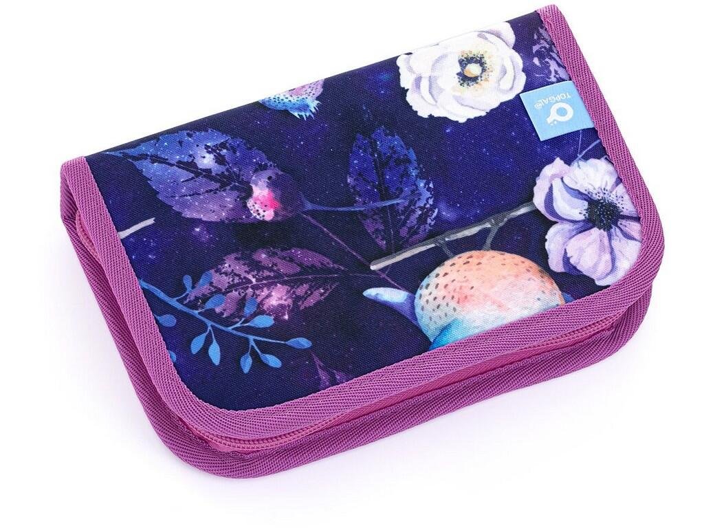 Jednopatrové školní pouzdro se dvěma klopnami je vybaveno 21 klasickými gumovými úchyty na pastelky a fixy, třema širšími úchyty na pravítko, kružítko či nůžky a dvěma většími úchyty na gumu a ořezávátko. Pod klopou z průhledné folie najdete rozvrh hodin, druhé poslouží třeba i na taháky :-)