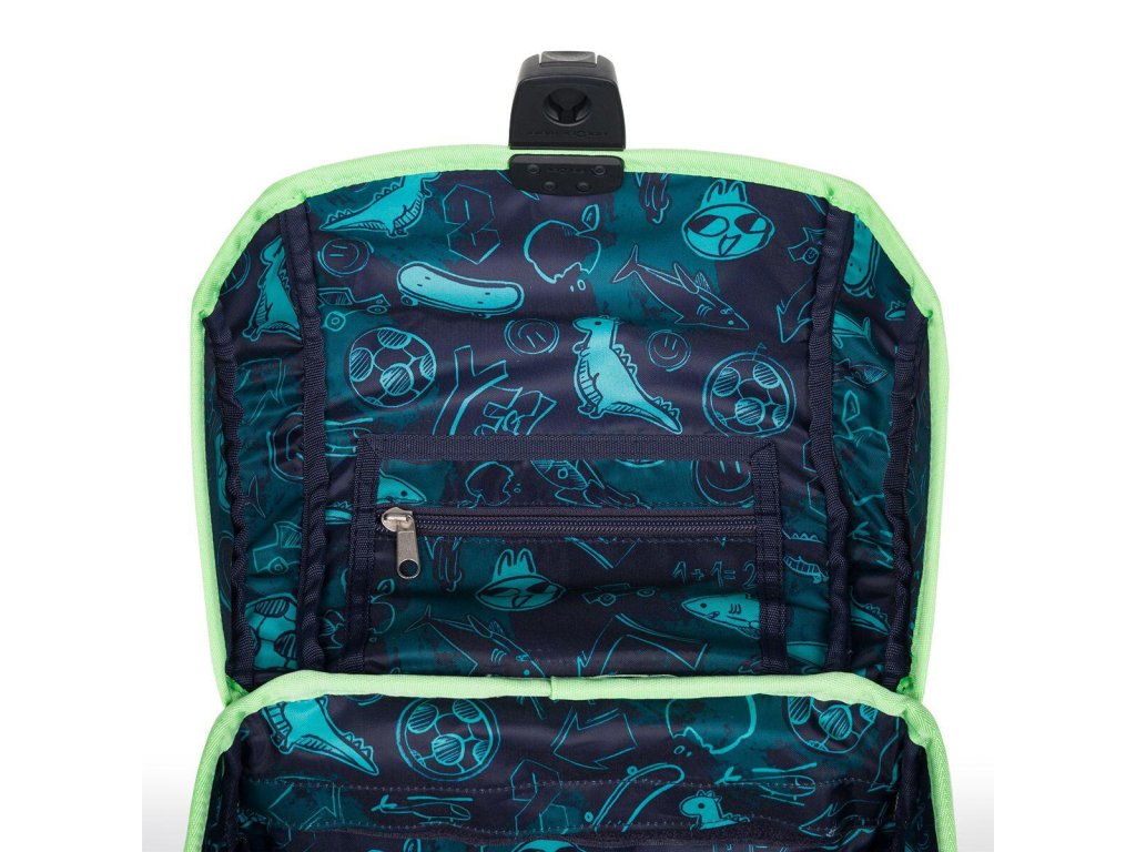 Jednopatrové školní pouzdro je vybaveno osmnácti klasickými gumovými úchyty na pastelky a fixy, čtyřmi širšími úchyty na pravítko, kružítko či nůžky a dvěma většími úchyty na gumu a ořezávátko. Pod klopnou z průhledné folie najdete rozvrh hodin, ale třeba poslouží i na taháky :-)