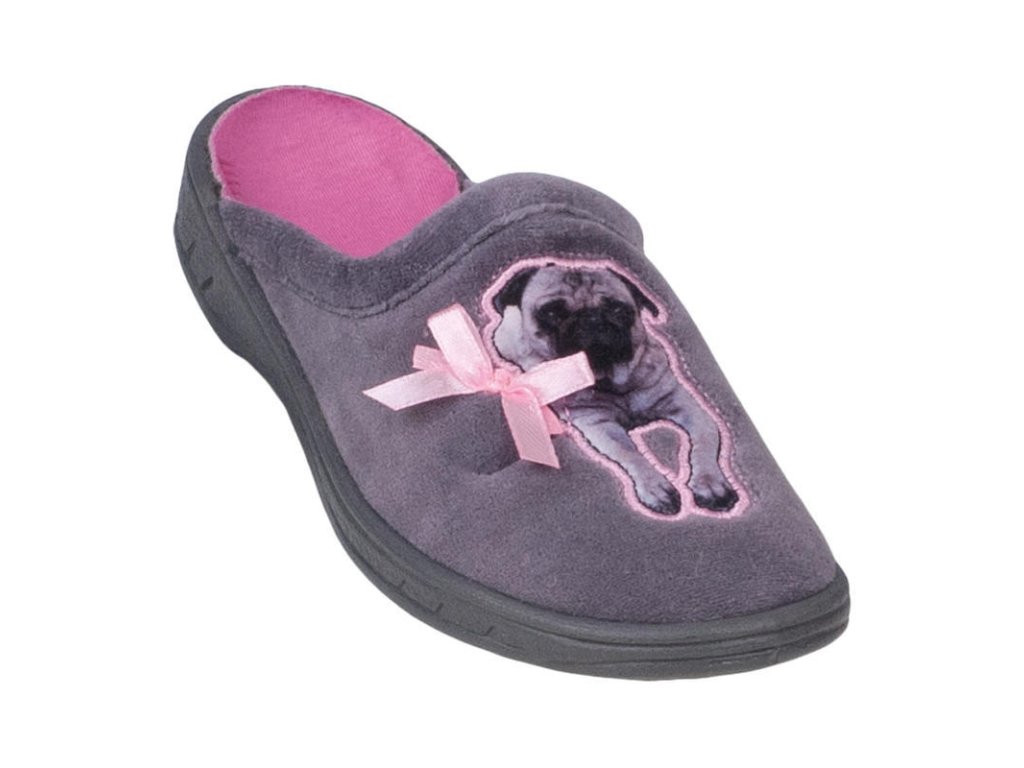 Befado dívčí pantofle v šedé barvě s buldočkem.