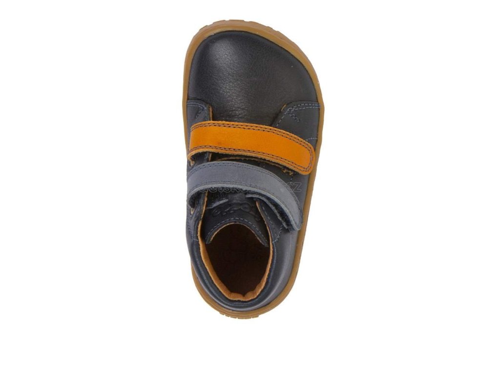 Barefoot celoroční kotníčková kožená obuv v tmavě modré barvě.