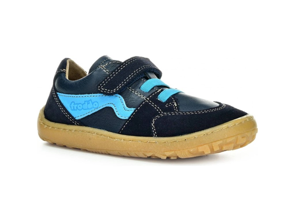 Barefoot Froodo tenisky v modrých barvách v kombinaci voděodpudivé kůže a textilu.