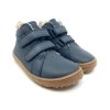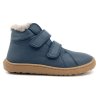 Barefoot zimní kotníčková, kožená obuv v modré barvě s kožíškem uvnitř boty.