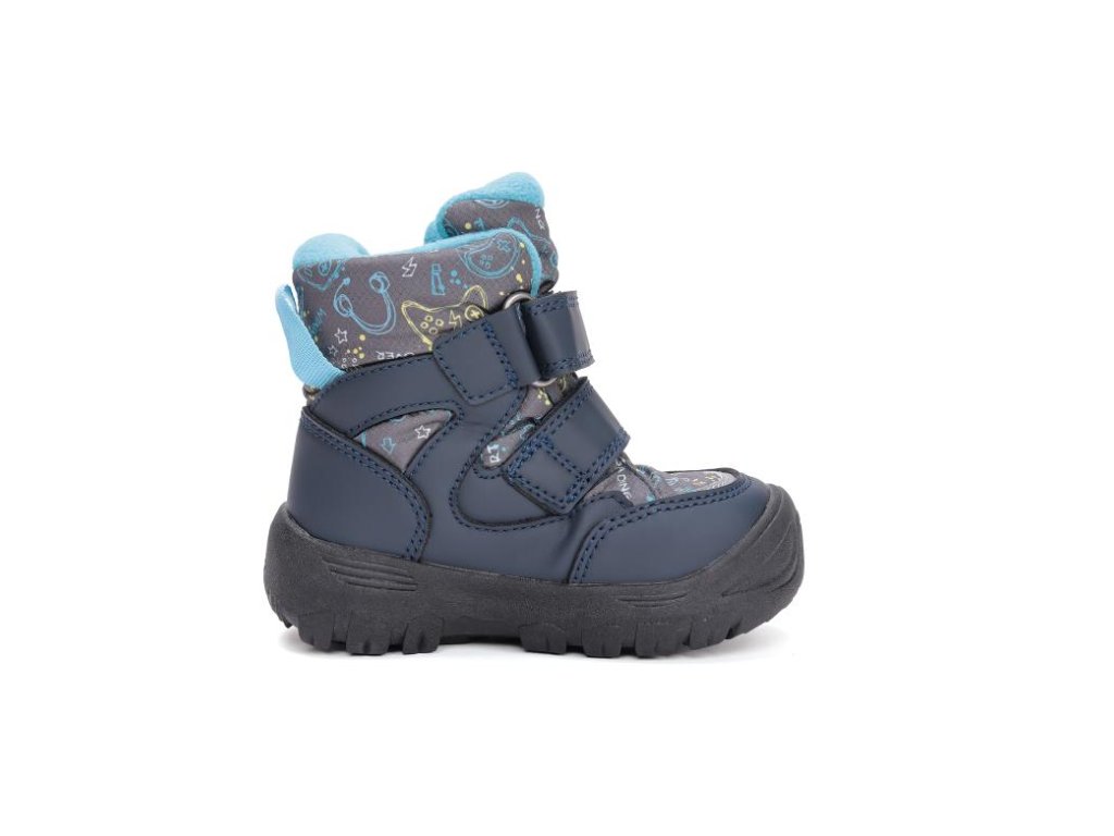 Chlapecká zimní kotníková obuv s voděodpudivou povrchovou úpravou. S ozdobným potiskem.