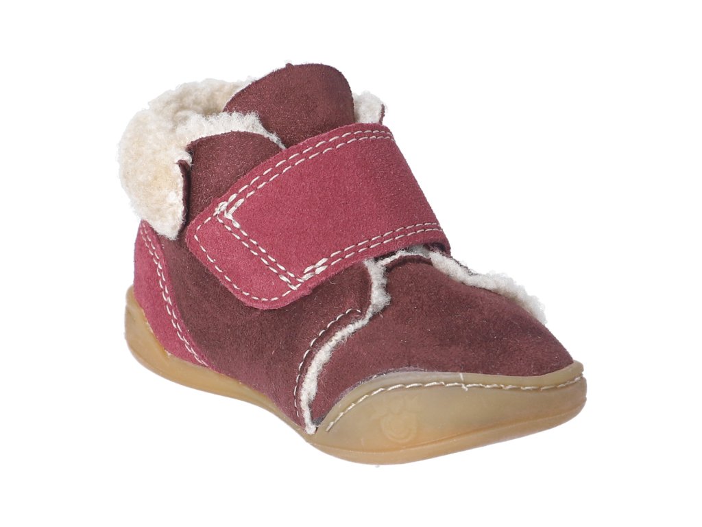Zateplené barefoot zimní boty pro naše nejmenší od německé značky Ricosta ve vínové barvě, ideální pro úzké nožky.