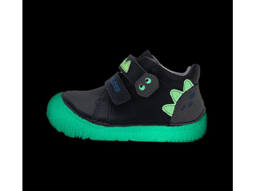 Celoroční barefoot vycházková obuv v černé barvě s motivem příšerky, svíticí ve tmě.