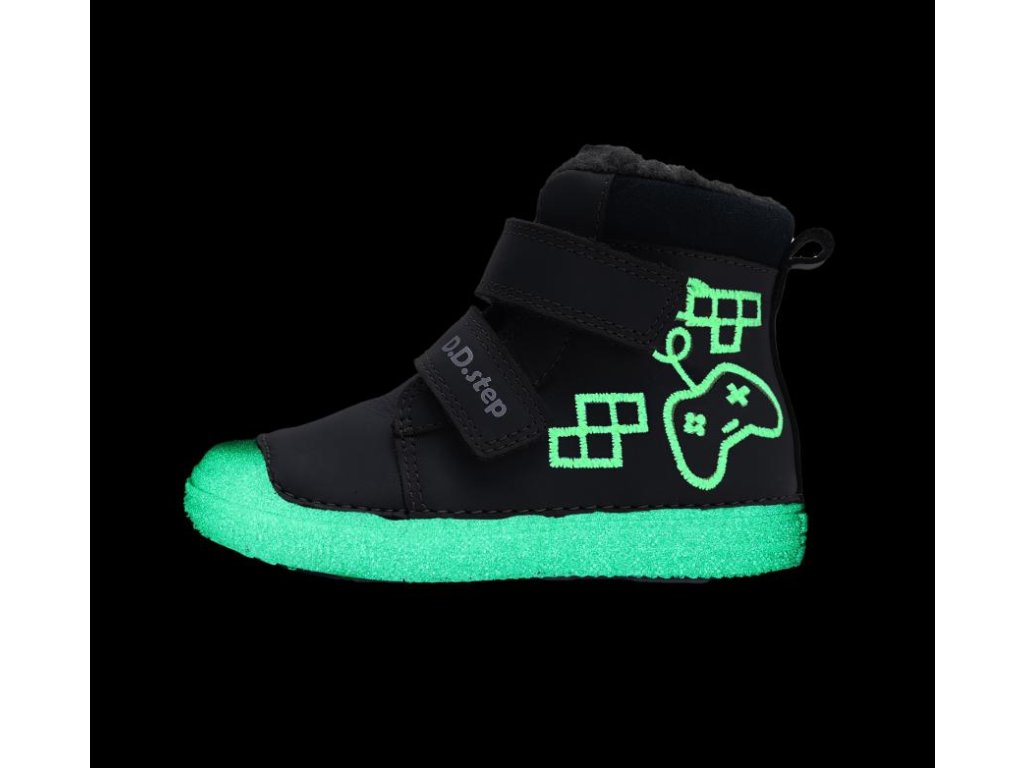 Dívčí zimní vycházková, klasická obuv s voděodpudivou povrchovou úpravou. S ozdobou game, která ve tmě svítí včetně podrážky.