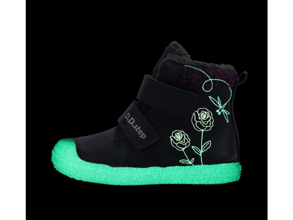 Dívčí zimní vycházková, klasická obuv s voděodpudivou povrchovou úpravou. Svíticí ve tmě.