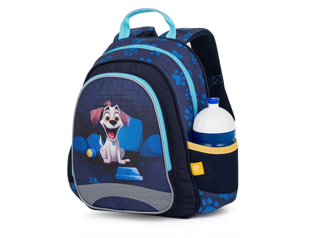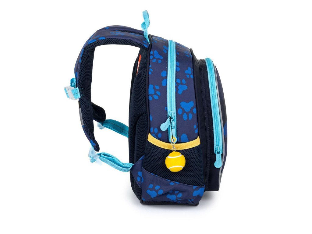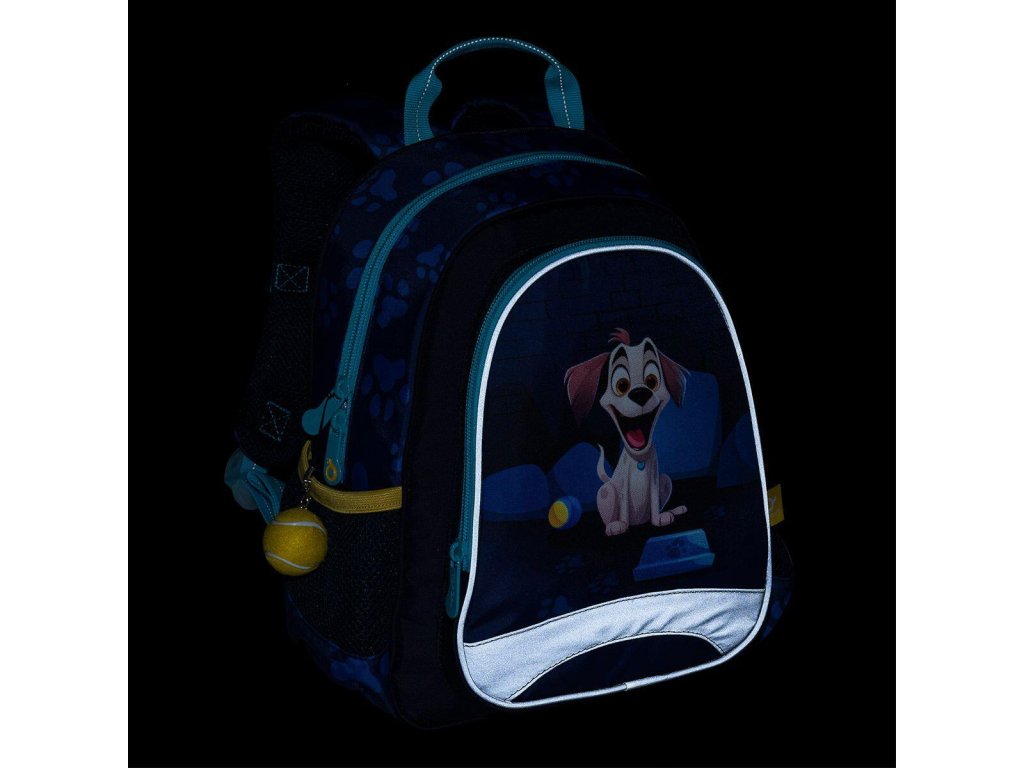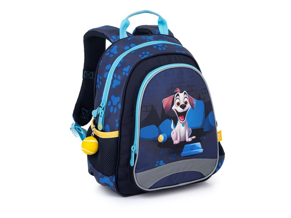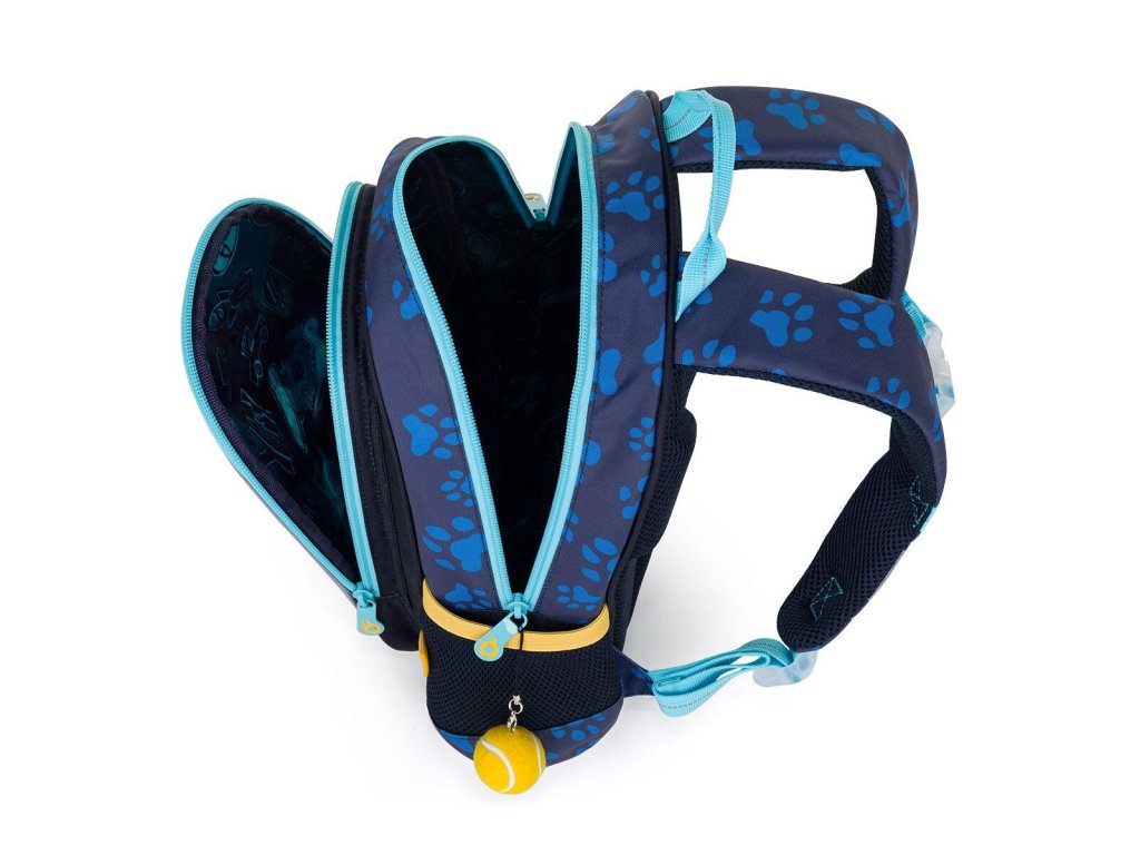 Tmavě modrý batůžek pro chlapečky i holčičky v předškolním věku. Hravé štěně má i svůj tenisový míček jako přívěsek.