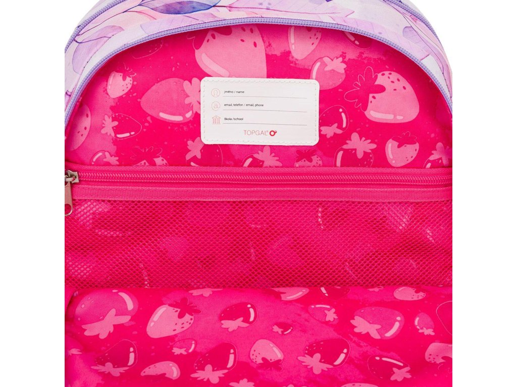 Do prostorné zadní komory doporučujeme ukládat nejtěžší učebnice nebo desky na sešity, směrem k přední části pak lehčí věci. Přední komora je užší, obsahuje praktickou síťovou kapsu na zip a jmenovku. Ideálně se hodí na penál ve stejném designu nebo box na svačinu. Do boční kapsy pohodlně vložíte lahev ZIVA s objemem 0,5 litru.
